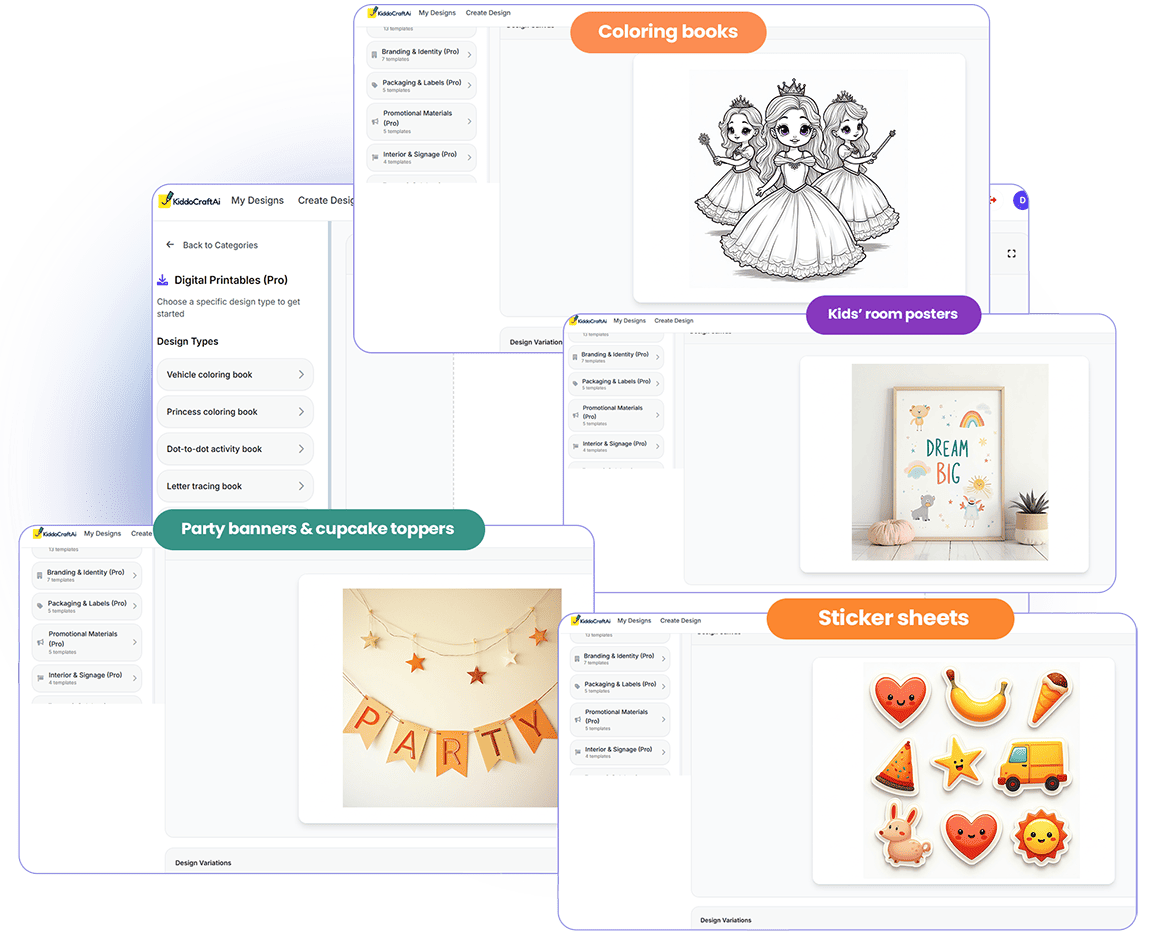 education, merchandise, and digital printables. Whether you're building logos for children's